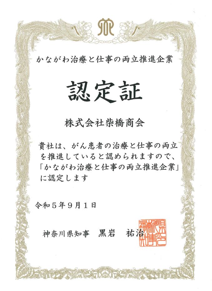 神奈川県よりゴールド認定を受けました(令和5年9月1日付)。